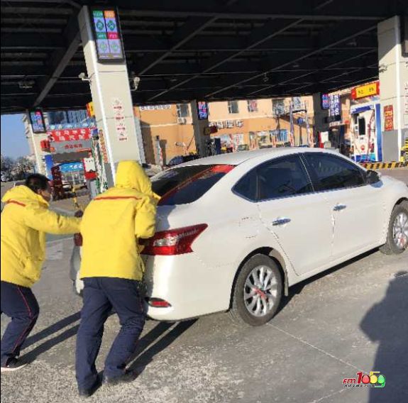2月4日,延东站加油员刘兵在接到金先生的进站求助后,立即叫上同班员工郑浩将金先生停靠在50米外的车辆推进站内加油,解决了金先生的难题。