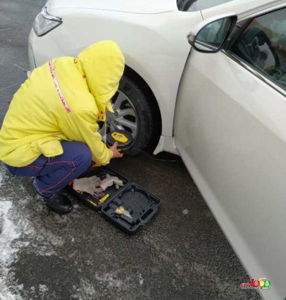 2月19日,高速敦化B站员工赵友喜在加油时,与顾客交谈得知在距离加油站约300米左右的位置,有一辆白的色轿车因车胎没气,正在想办法求援。赵友喜在服务完客户后,带着自己的补气设备前去救援。