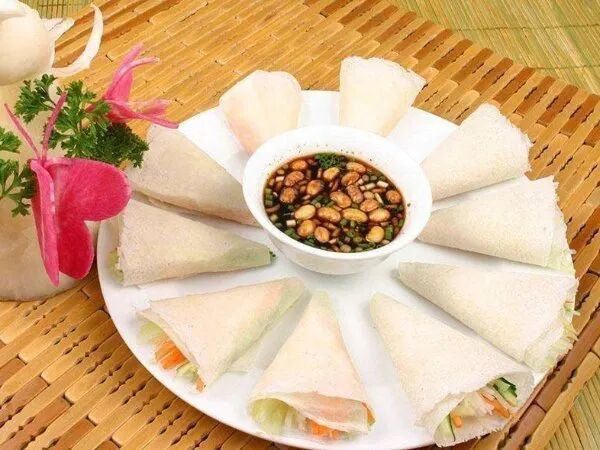 丝娃娃丝娃娃还有一个别名叫做“素春卷”,由于外形很像被子包着婴儿一般,就被称之为“丝娃娃”,它是贵州省贵阳市的地方传统小吃之一,一张薄如纸张的薄饼卷入萝卜丝、折耳根、海带丝、芹菜丝、黄瓜丝、炸黄豆、辣椒等数十种素菜卷着吃,再配上一碗红酸汤蘸水,吃起来酸辣爽口(也有麻辣鲜香的蘸水),脆嫩美味。03