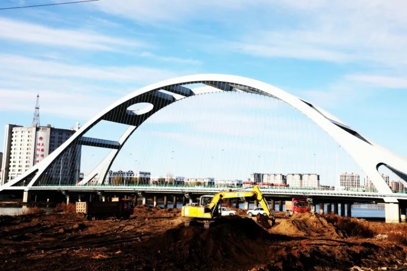 在敦化市区牡丹江干流敦化市新型城镇化水生态改造提升示范项目(右岸)施工现场,挖掘机扬臂起落轰鸣不断,工程运输车来回穿梭,呈现出一幅热火朝天冬修水利的喜人画卷。