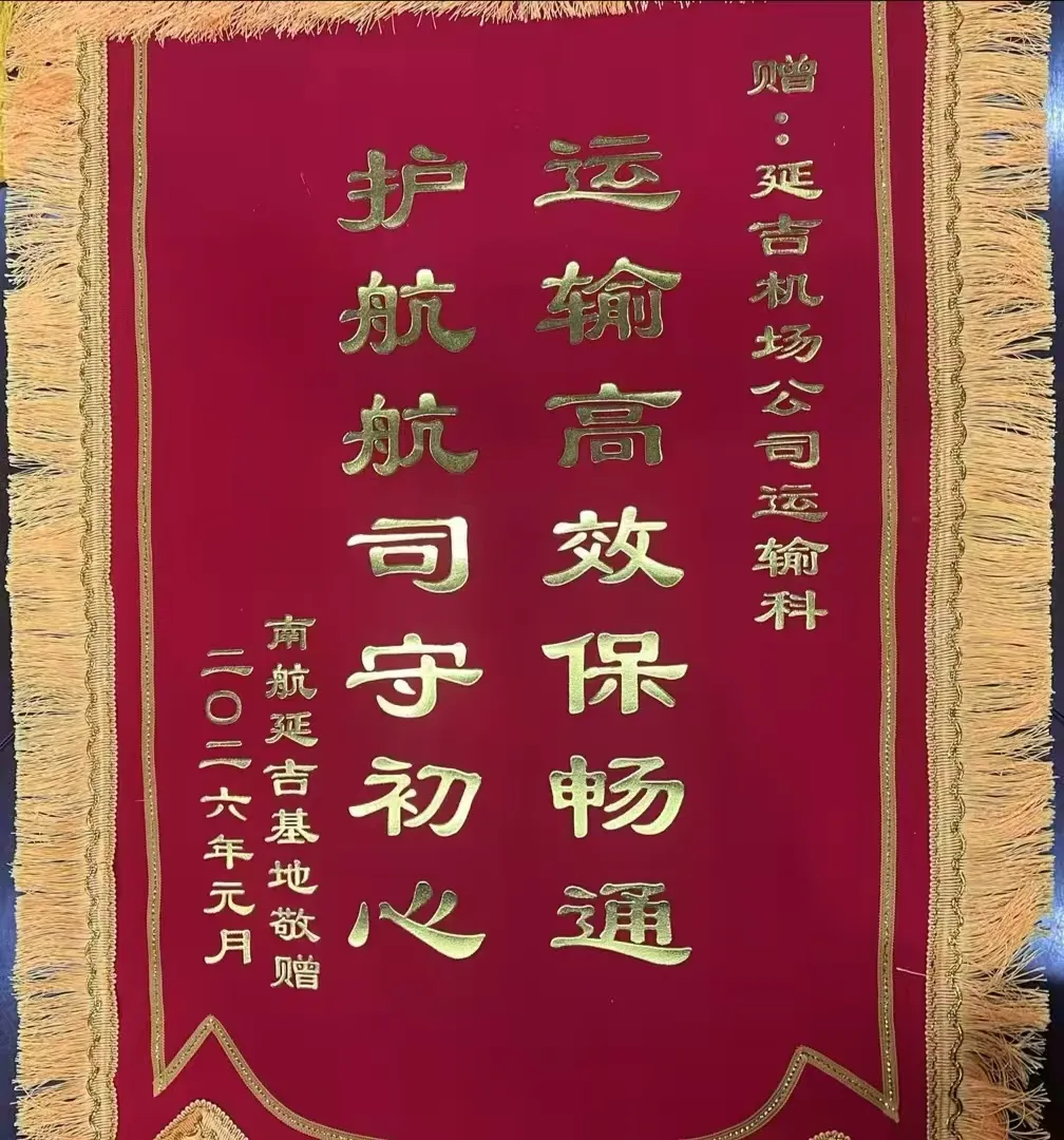 服务的光芒,不仅照亮旅客,也温暖着合作伙伴。近日,南航延吉基地将一面绣有“运输高效保畅通护航航司守初心”的锦旗郑重送至机场分公司。这面锦旗,源于无数次恶劣天气下的协同保障、航班延误时的通力协作、行李运输时的精准高效。它无声诉说着:在延吉机场,“七彩缘”服务的内涵早已超越面对旅客的窗口,它延伸至保障链条的每一个环节,是为所有航空公司航班正点、运行顺畅提供的坚实地面支撑。这份来自业界同仁的认可,是对机场整体服务保障体系投下的最宝贵信任票。
