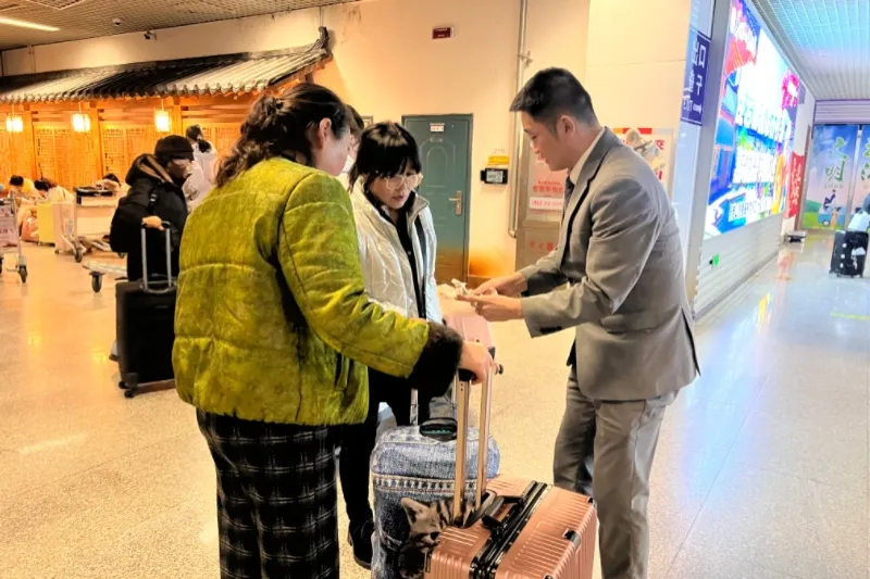 1月4日,候机楼内人流如织。“七彩缘”服务专员黄珊的目光如雷达般扫过值机区域,她发现了三位在国航柜台前眉头紧锁、反复查看时间的旅客,便主动上前,轻声询问,方知难题所在:三位旅客需经北京中转至广州,但直到办票时才惊觉,在北京提取行李、重新值机的时间将所剩无几。“时间不够”是旅途中最尖锐的焦虑。黄珊立即意识到,常规流程已无法解决。她迅速请来当班组长常尔顿。两位专员瞬间形成一个微型“攻关小组”。“必须尝试‘一次值机、行李直挂’!”这是打破困局的唯一钥匙。然而,涉及不同航站、不同代理,操作复杂且需多方即时授权。
