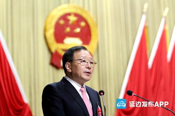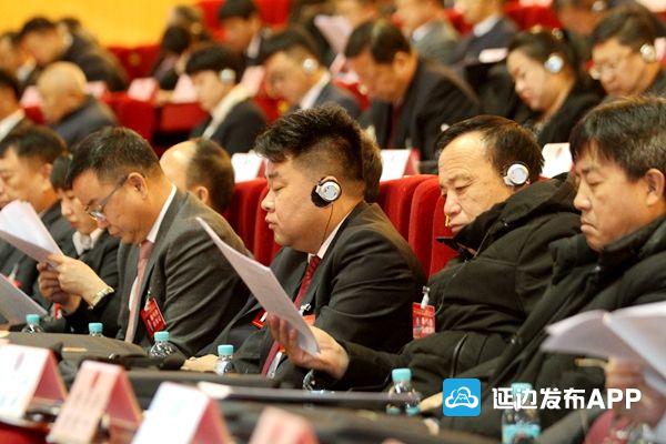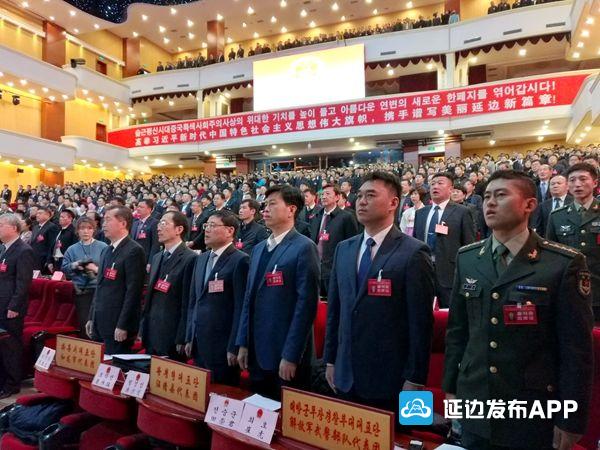 会场气氛庄重热烈,主席台帷幕正中的国徽在鲜艳的红旗映衬下熠熠生辉,会场内“高举习近平新时代中国特色社会主义思想伟大旗帜,携手谱写美丽延边新篇章!”的标语,鼓舞斗志,振奋人心。