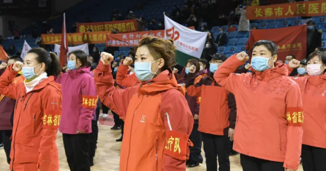 2月21日,吉林省第十二批医疗队启程驰援湖北,省委书记巴音朝鲁为医疗队送行,代表省委、省政府和全省人民向即将奔赴战场的医务工作者表示崇高的敬意,为白衣战士加油壮行并授旗。省委副书记、省长景俊海主持壮行仪式。