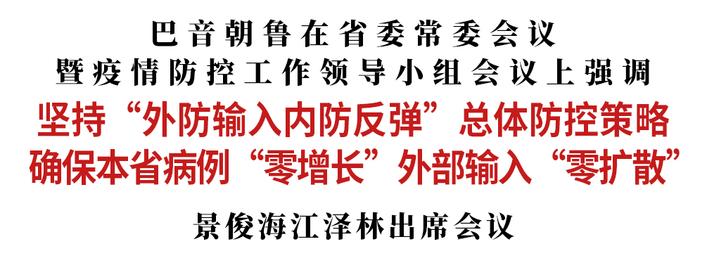 巴音朝鲁强调,要继续把防范境外疫情输入作为重中之重,紧盯直接入境人员,加强各环节闭环管理,严格落实隔离措施,最大限度调减航班数量,从源头上减少输入风险、降低防控压力;严防跨省入境病例,加强信息共享和部门联动,共同构建入境人员全方位、全过程、全链条防控体系,坚决防止感染者经其他地区中转进入我省;加强应急处置准备,严格落实“五早”措施,进一步强化社会防控和预警机制,最大可能减少传播扩散风险。要继续推动企业达产达效,进一步增强各类市场主体发展意愿,尤其要让消费快速热起来,提振重启生产、扩大生产的士气,提升积极消费、扩大消费的人气;进一步疏通产业上下游“断点”“堵点”,解决企业发展“难点”“痛点”,推动产业链、配套链、供需链运转加速衔接;进一步强化服务,增强领导包保、秘书制、万人助万企等工作实效,实实在在帮助企业解决实际问题。要精益求精做好复学复课充分准备,千方百计保障物资供应,细之又细做好校园安全管理,真正做到让学生安心、让家长放心。要继续做好关心爱护援鄂医疗队工作,强化服务保障,落实好各项政策,加大宣传报道力度,做好表彰工作,凝聚起众志成城、共克时艰的强大力量。要继续加强疫情防控国际合作。进一步加大对国外友好城市、高校、企业、社团和其它机构援助力度,帮助他们共同打好全球疫情防控阻击战。