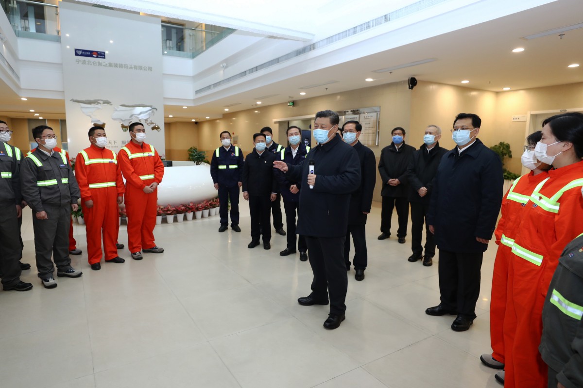 3月29日,习近平前往宁波舟山港穿山港区考察。穿山港区采取措施及早恢复生产,港口吞吐量已逐步恢复至日常水平。习近平强调,宁波舟山港率先恢复生产,对推动我国企业复工复产、恢复物流体系、恢复全球产业链具有重要意义。在业务调度大厅,习近平听取了港区情况和复工复产情况汇报。在一楼大厅,习近平同港口职工代表亲切交流,对他们表示慰问。习近平强调,要未雨绸缪,关注境外疫情形势,在坚持不懈抓好疫情防控的同时,积极应对和化解各国为抗击疫情采取的各项限制性措施对货物航运带来的影响,促进我国出口货物出得去、进口货物进得来。习近平希望他们努力克服疫情影响,争取优异成绩。