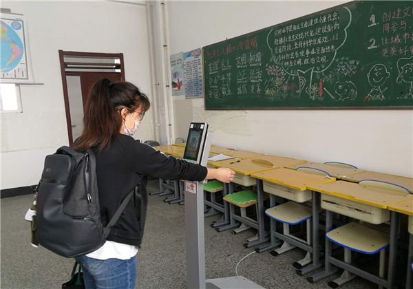 看到同学们一个个穿过人脸识别红外测温仪,再经过手持测温仪量完体温坐进教室。延吉市第二高级中学党支部书记、校长韩哲石稍微松了一口气。一个星期前,为做好疫情防控,韩哲石和其他校领导、教职工一直忙个不停。