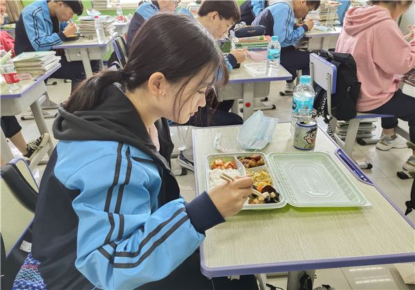 在首批开学的毕业年级里,延吉市职业高级中学毕业年级一共有四个班,124名学生。一周以来,学生们每天早晚都是按照学校事先规定好的路线上学、放学。午餐时,由食堂工作人员将学生餐盒按时送达班级门口,各班级值日学生带好一次性医用手套后,逐一分发至每名同学,学生分别在自己的座位上用餐。饭后,会由专人将餐盒统一送至学校垃圾点。