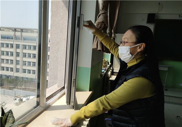 职业高级中学2017级高考4班数学教师姜丽正在为班级通风