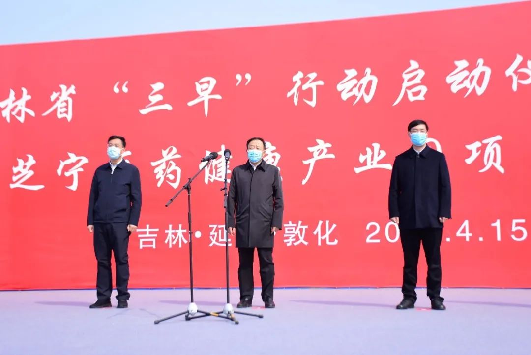 4月15日,2020年吉林省“三早”行动启动暨项目集中开工活动在长春举行。省委书记巴音朝鲁,省长景俊海参加活动。活动采用音频连线形式,长春设主会场,全省其他地区设分会场。州委副书记、州长金寿浩在设于敦化健芝宁医药健康产业园项目现场的延边分会场参加活动,并向主会场报告我州项目开工情况。