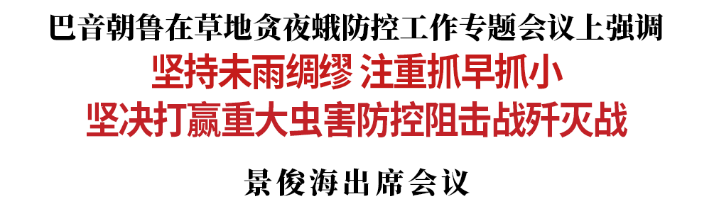 巴音朝鲁强调,要确保防控措施到位,坚持宜早不宜迟、早抓早主动,坚持早准备、早监测、早发现、早防治,切实加强监测预警和虫情调查,做到县不漏乡、乡不漏村、村不漏田,严格信息报告制度,落实关键技术措施,做到治早治小、全面扑杀,努力把虫害扑灭在暴发之前,把虫害影响降到最低。要确保工作保障到位,积极开展虫害发生规律、防控技术攻关等基础研究,大力开展科普宣传和多层次技术培训,提高农民的识别和防控能力,加强病虫防治专业服务队伍建设,提升应急防治能力和水平,进一步加大资金保障力度,全力保障虫害防控需求。要确保责任落实到位,省政府要专门成立农业植物重大有害生物应急防控指挥部,切实加强对防控工作组织领导。各级政府要担负起防控主体责任,按照“省负总责、县抓落实、分级负责、属地管理”的应急防控机制,建立相应组织机构,配齐配强工作力量,及时协调解决重点问题和重大事项。相关部门要加强沟通协调,密切协作配合,形成工作合力,确保各项措施落地见效。
