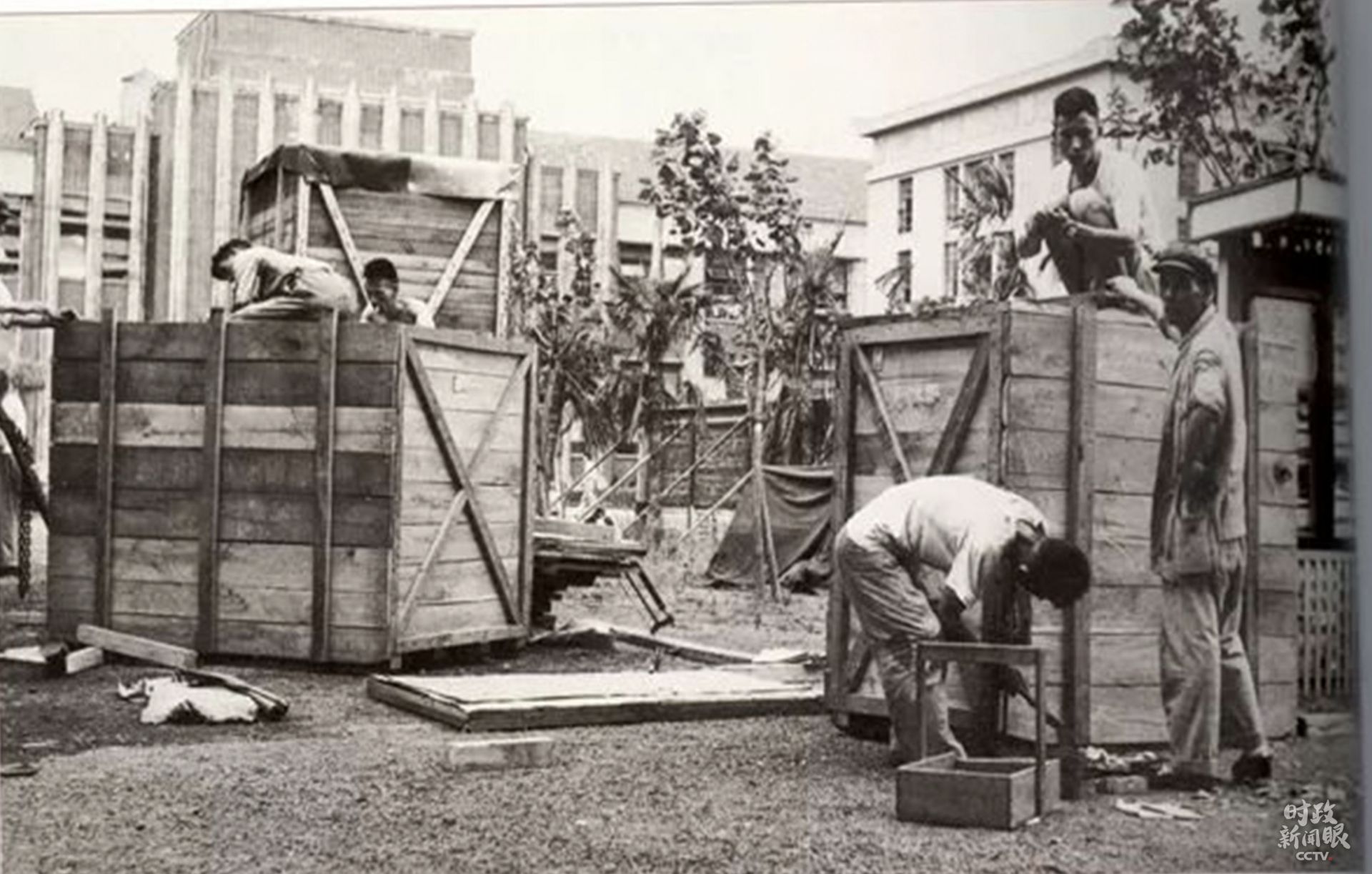 △这块高2米的交通大学校牌,1956年从上海随校西迁至西安,一直挂于学校北门(正门)。1992年校北门新建后,此校牌由校档案馆收藏。旁边的沙发、樟木箱等家具,是学校为西迁人员专门定制并打包托运的。(总台央视记者钟锐拍摄)