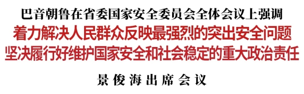 今天(4月23日),省委国家安全委员会召开全体会议,深入学习贯彻习近平总书记在十九届国安委第三次全体会议上的重要讲话精神,总结去年全省国家安全工作,研究部署今年重点任务。省委书记、省委国家安全委员会主任巴音朝鲁主持会议并讲话,省委副书记、省长、省委国家安全委员会副主任景俊海出席会议。