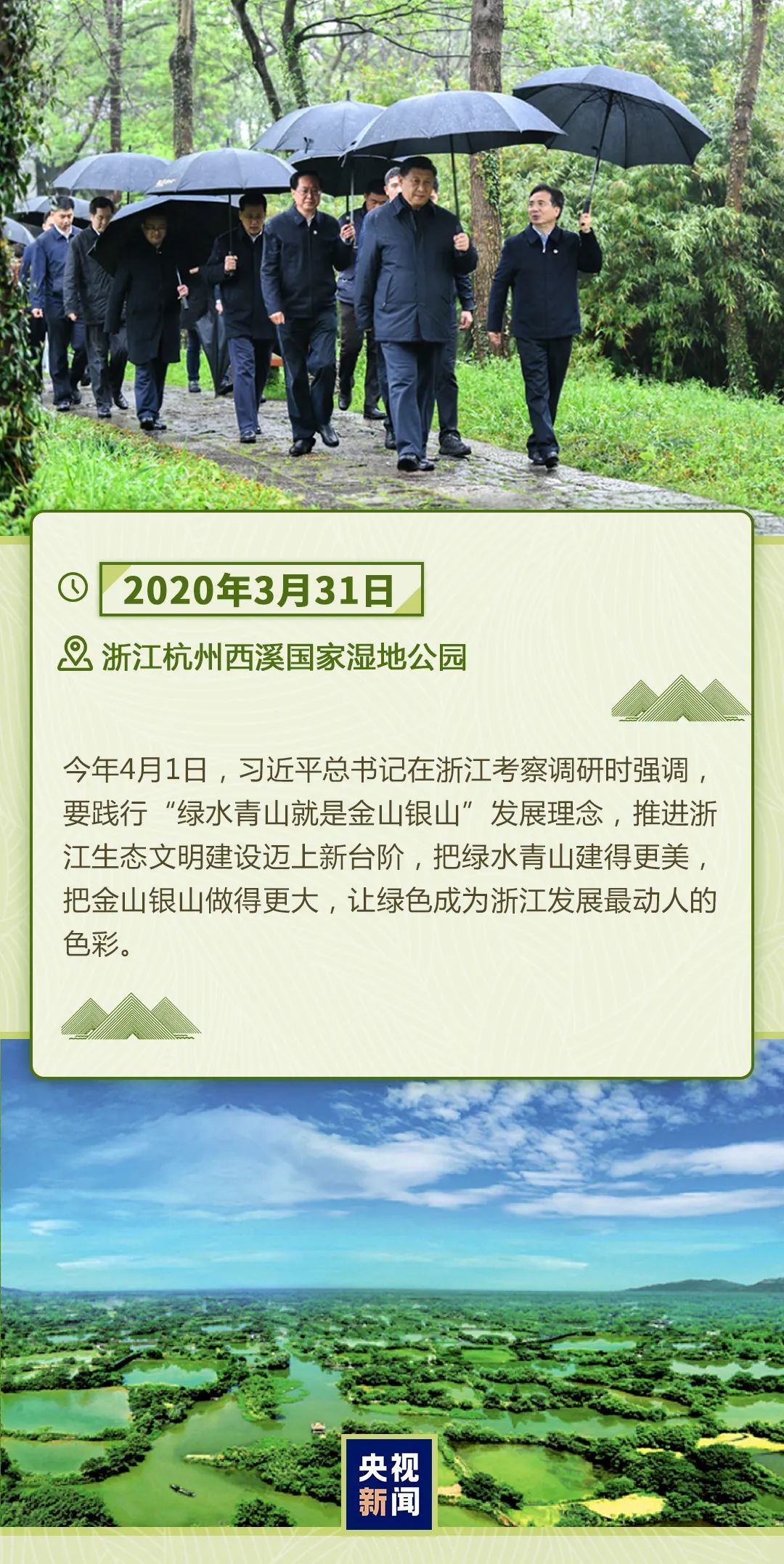 内蒙古喀喇沁旗马鞍山林场、甘肃祁连山下山丹马场、河南郑州黄河国家地质公园、云南滇池星海半岛生态湿地、浙江杭州西溪国家湿地公园、陕西秦岭牛背梁国家级自然保护区……一年来的几次地方考察,习近平总书记深入生态保护一线,对合理利用、友好保护生态作出重要指示。