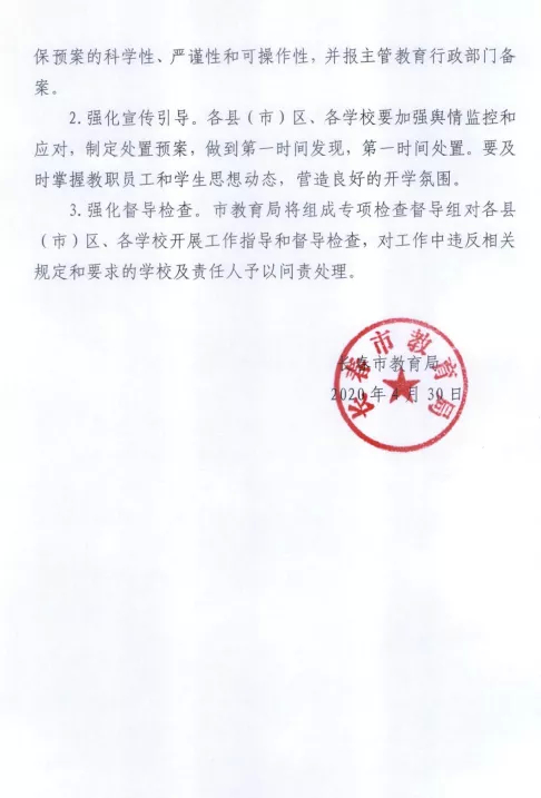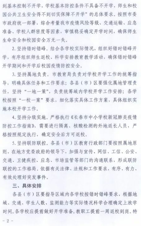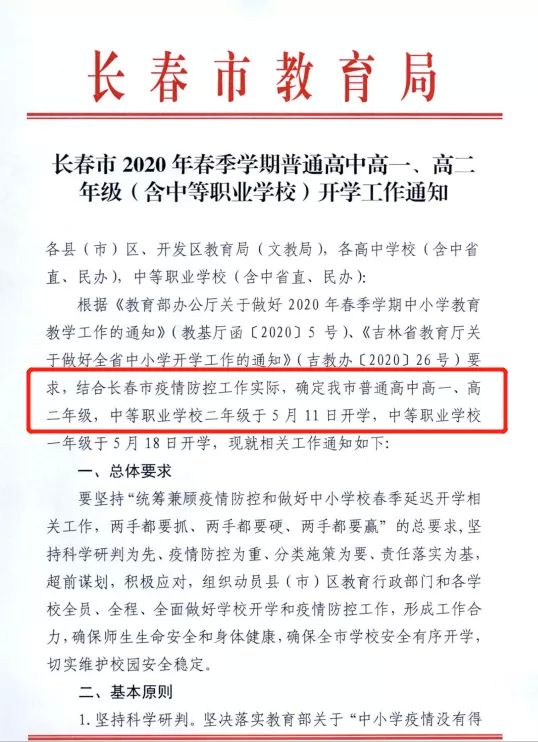 长春市高一、高二开学时间确定!