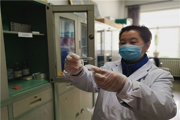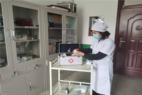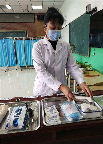 第八中学保健教师正在整理防控物资