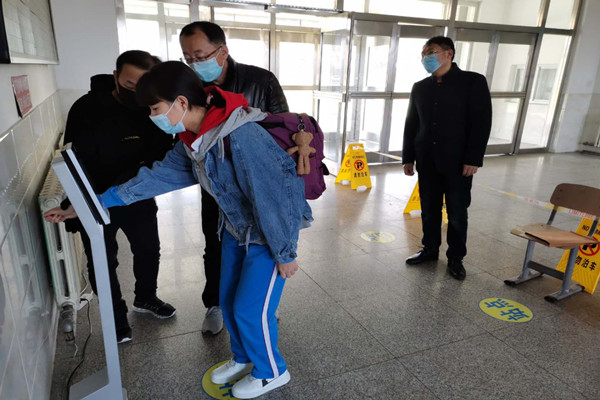 6点20分至7点两次测温入校,6点30至7点10分班级第三次测温、登记, 11点40分指导学生就餐,12点20分—12点40分午间测温,17点40分晚间测温,18点组织放学,18:30班级消毒,19点开窗通风,19点30分给家长们发送当日学生情况反馈,全天7-8节的课时量……“这是我们学校九年级班主任一天的工作,这场中考碰上‘疫考’的硬仗,接到学校动员令后,他们没有迟疑,陪着孩子们一起迎难而上,第一时间‘逆行出征’。量体温、消毒,填各种报表、监督孩子洗手……12位班主任勇挑重担,在工作量、教学量几乎增加了一倍的基础上,高质量完成了2个班级的防疫工作,做到防疫工作和教学工作两不误,家校沟通和班级管理两不误。每日送走最后一名学生离校后,班主任的脸上或多或少都会映衬着倦意,看在眼里真是心疼。”延吉市第四中学副校长娄照和说。