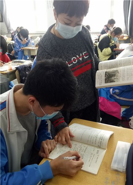 第四中学九年六班班主任刘昱凤为学生答疑解惑