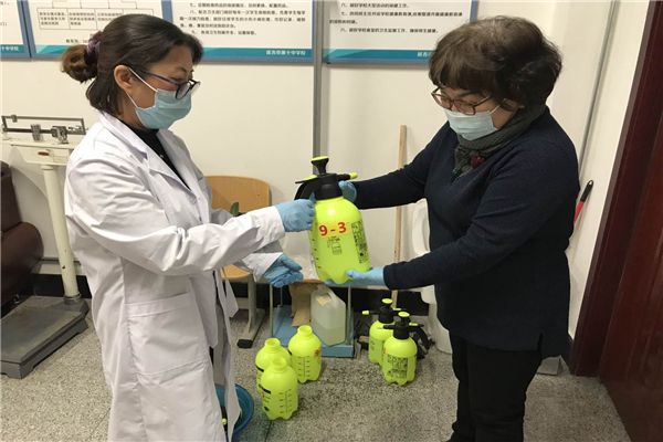 第十中学保健教师为九年级班主任匹配消毒液