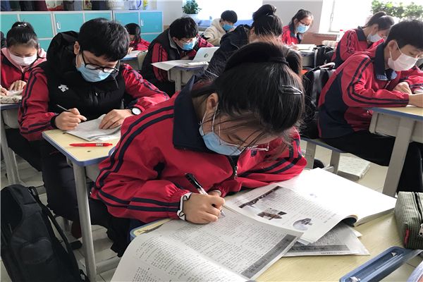 实验中学九年级学生上课中