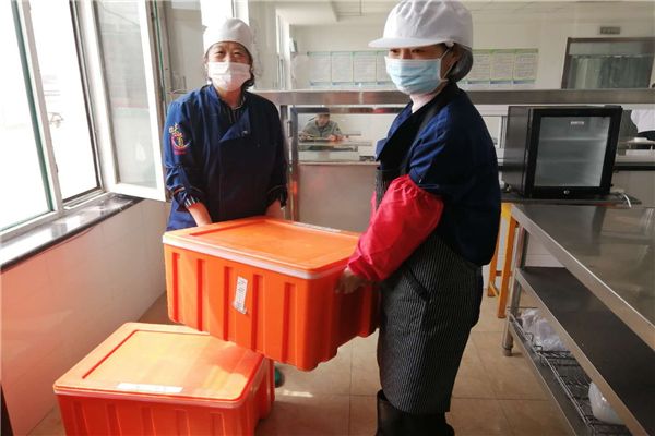 烟集学校食堂工作人员装好餐盒