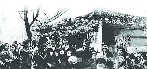 1981年3月20日,中国男排战胜韩国队,代表亚洲参加世界杯赛。北京大学为此喊出了“团结起来,振兴中华”的口号。经《人民日报》报道,这一口号传遍大江南北,成为那个时代激励中国人奋发图强的磅礴精神力量。
