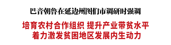 调研中,巴音朝鲁充分肯定延边州和图们市脱贫攻坚工作取得的成效。他指出,当前,脱贫攻坚已经到了收尾关键阶段,正处于决战决胜的重要窗口期。各级党委、政府和有关部门要深入贯彻落实习近平总书记关于疫情防控、脱贫攻坚重要指示精神,把握精准方略,强化责任担当,以决战决胜之势发起脱贫攻坚最后总攻,确保如期高质量完成脱贫攻坚任务。要聚焦剩余贫困人口和“两不愁三保障”突出问题,加快推进饮水安全、住房安全、村级卫生室信息化建设等剩余工程,尽快补齐短板,确保如期清零见底。要严格落实“四个不摘”要求,建立健全动态帮扶机制,确保脱贫人口不返贫。要把脱贫攻坚与乡村振兴有机衔接起来,充分发挥农村专业合作组织作用,在因地制宜发展特色产业上下功夫、作文章,打造延边大米、黄牛、人参、黑木耳等地理标识品牌,大力发展中药材、优质粮杂豆、果蔬等高效作物,加快发展乡村旅游,深挖特色农业潜力,完善产业带贫机制,组织消费扶贫行动,充分激发贫困地区发展的内生动力,促进逐步实现共同富裕。要牢记“人误地一时,地误人一年”的道理,抢抓农时组织好春耕生产,坚持保面积、保播种、保青苗、保不受重大病虫害影响,确保今年农业丰收,为保障国家粮食安全作出更大贡献。