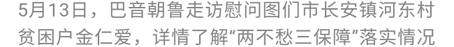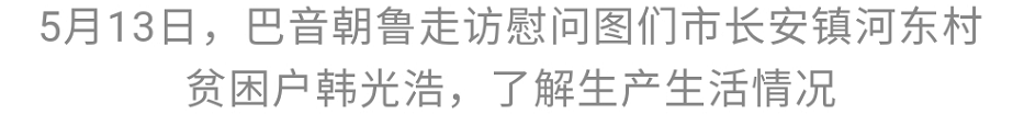 巴音朝鲁十分关心贫困户生产生活情况。他先后来到低保贫困户金仁爱家和韩光浩家走访慰问。每到一户,巴音朝鲁与贫困户话家常、聊近况,详细了解他们的家庭生活、收入来源、产业发展、身体健康等情况,听取他们目前存在的困难和问题、对生产生活方面的主要打算,并鼓励他们保持乐观向上的生活态度,增强战胜贫困的信心和勇气,在党委政府关怀和社会各界的帮助下,进一步巩固脱贫成果,摆脱贫困奔小康。他强调,脱贫攻坚容不得半点闪失,不能留下任何遗憾,要聚焦目标标准,坚持因户施策、精准到人,进一步落实责任、传导压力、解决问题,坚决做到不漏一户、不落一人、不差一项,确保脱贫攻坚成效经得起历史和人民检验。