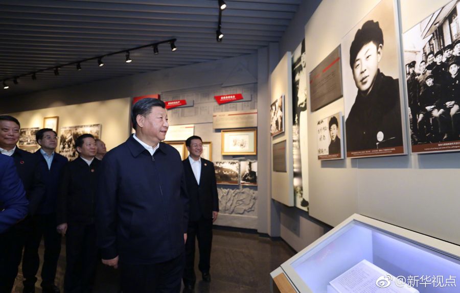 2020年4月20日至23日,中共中央总书记、国家主席、中央军委主席习近平在陕西考察。这是4月22日,习近平在西安交通大学交大西迁博物馆亲切会见西迁老教授。新华社记者 谢环驰 摄