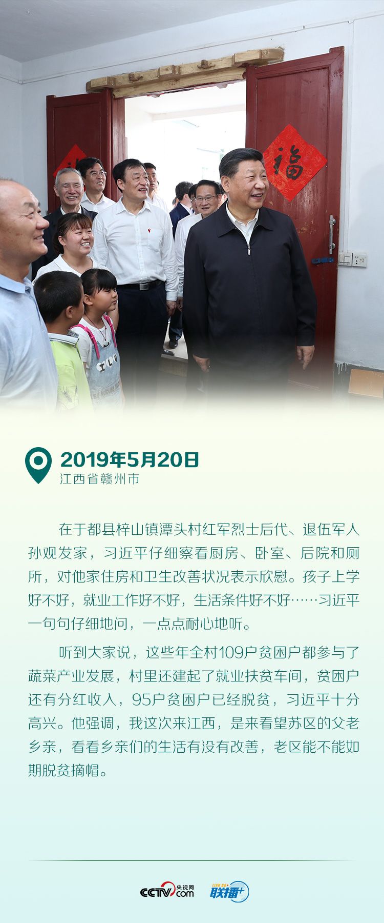 一年来,为确保脱贫攻坚任务如期完成,习近平先后赴重庆、江西、内蒙古等省区市考察调研,同贫困群众一起拉家常、算收支、想办法……