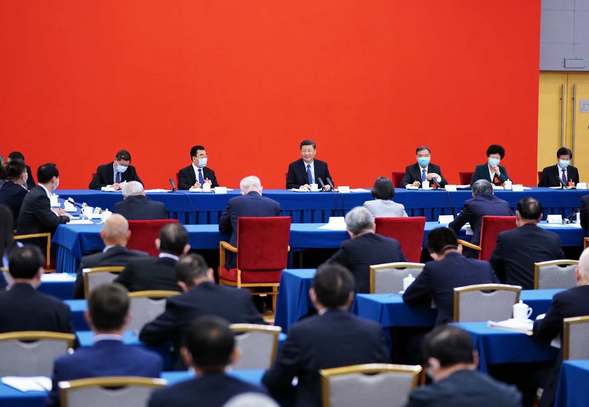 中共中央政治局常委、全国政协主席汪洋参加看望和讨论。