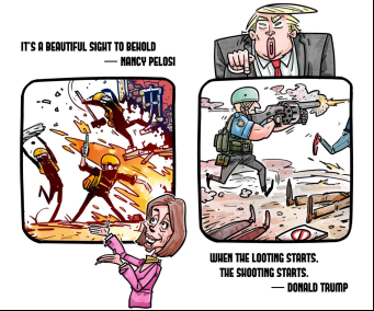 美国政客对国内国外骚乱场景的不同态度 ,对于国内骚乱举枪应对,对于香港暴徒的恐怖行径则举双手双脚支持。