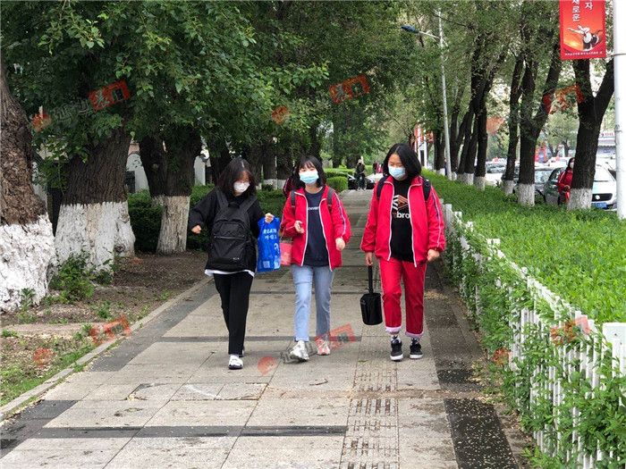 早晨6时30分左右,记者在延吉市第二高级中学校门口看到,马路旁停了长长的一排私家车,身着校服、戴着口罩的高中生背着书包、提着资料袋和饭盒从车上下来往校门口走去,还有一些学生从林荫中的甬道走来,纷纷来到心念已久的校园。