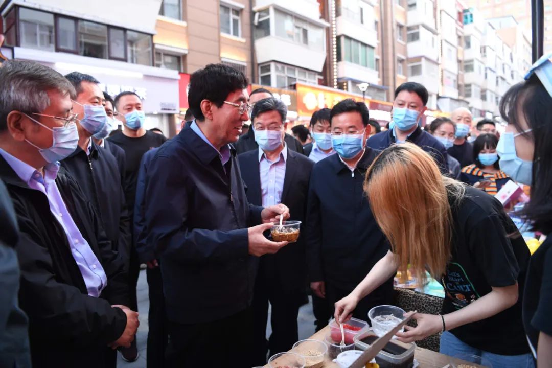 6月1日晚上,省委书记巴音朝鲁来到长春市朝阳区桂林胡同,调研夜经济发展情况。他强调,要深入贯彻全国两会特别是习近平总书记重要讲话精神,全面落实“六保”“六稳”工作举措,在严格抓好常态化疫情防控的同时,坚持因地制宜,加强统筹谋划,进一步做大做强夜经济,培育激发新活力,为稳增长、促就业、保民生提供有力支撑,为全面建成小康社会奠定坚实基础。