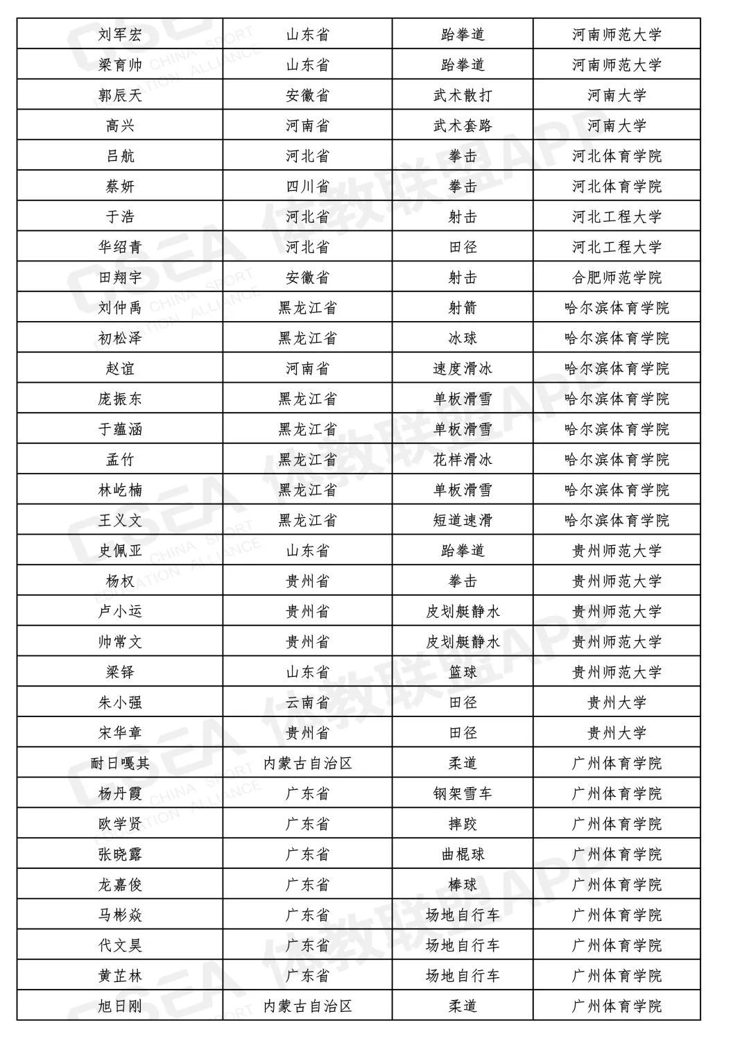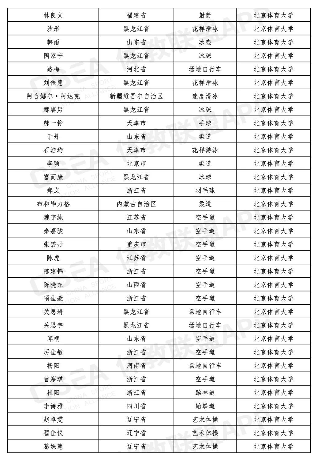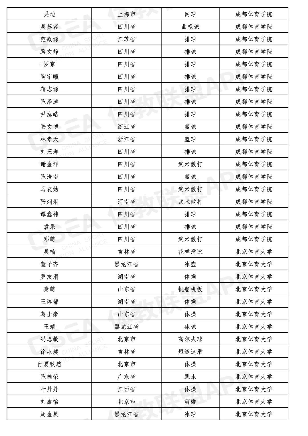 附件:2020年清华大学等高校保送录取运动员名单(见下文)