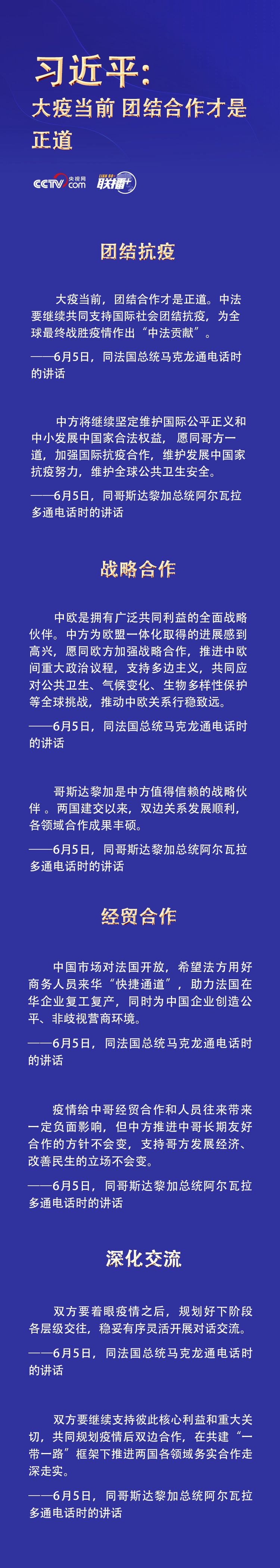 当前,全球疫情扩散蔓延势头尚未得到有效遏制,加强国际抗疫合作,维护全球公共卫生安全尤为重要。习近平主席最新的两次“电话外交”有哪些看点?就共同迎接挑战释放了哪些积极信号? 央视网《联播+》特梳理,为您一起学习。