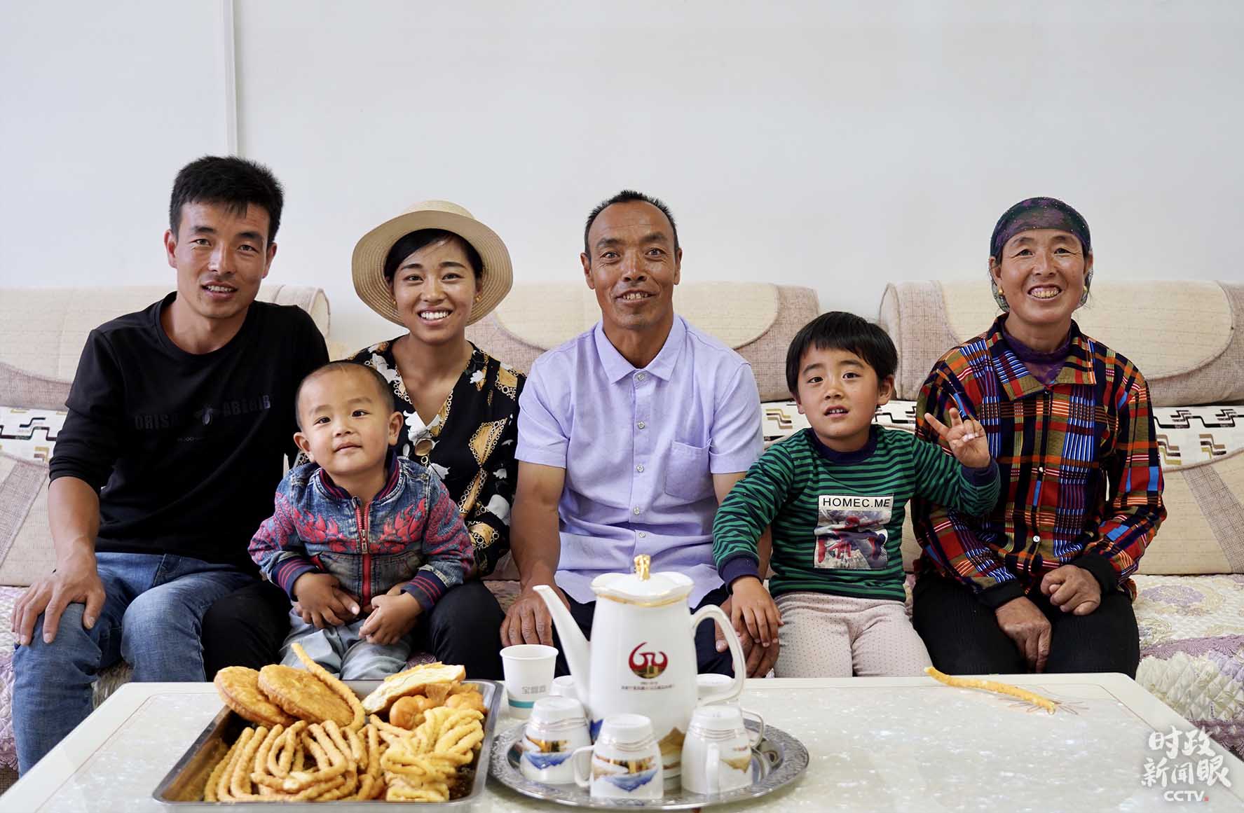 △刘克瑞(中)一家在新居的全家福。(总台央视记者贾林拍摄)
