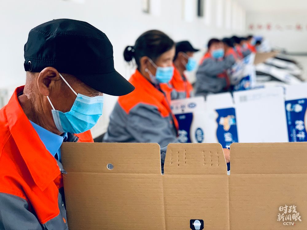 △这位67岁的老人叫郑耀明,在扶贫工厂做包装箱生产工作2年,月薪700元。(总台央视记者邢彬拍摄)