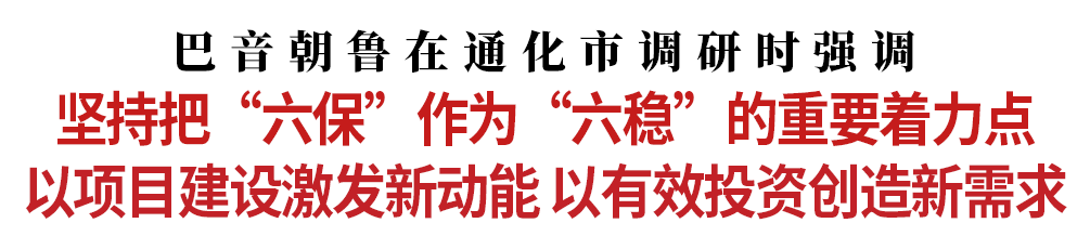 6月9日至10日,省委书记巴音朝鲁来到通化市,围绕贯彻落实全国两会精神,加快推动东部绿色转型发展区建设进行调研。他强调,通化市各级党委政府要深入学习贯彻习近平总书记在全国两会上的重要讲话精神,紧扣全面建成小康社会目标任务,坚定不移实施扩大内需战略,坚持把“六保”作为“六稳”的重要着力点,以项目建设激发新动能,以有效投资创造新需求,确保完成决战决胜脱贫攻坚目标任务,全面建成小康社会。