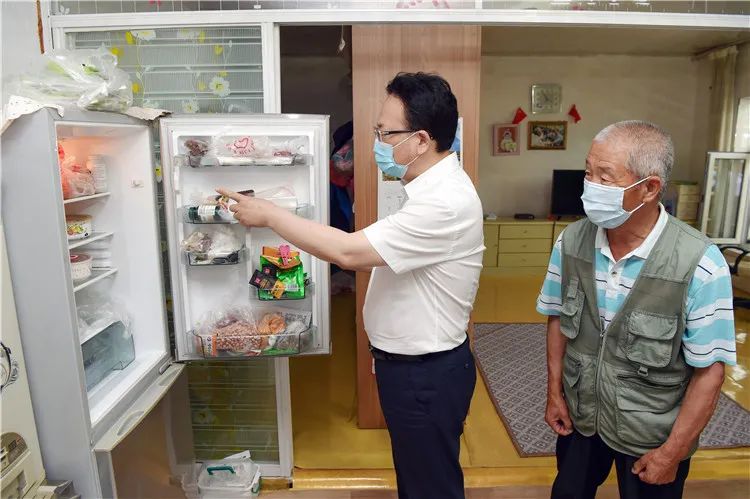 在图们市石岘镇河北村,景俊海来到金哲柱家中,打开冰箱查看,详细了解生活情况。邹乃硕 摄