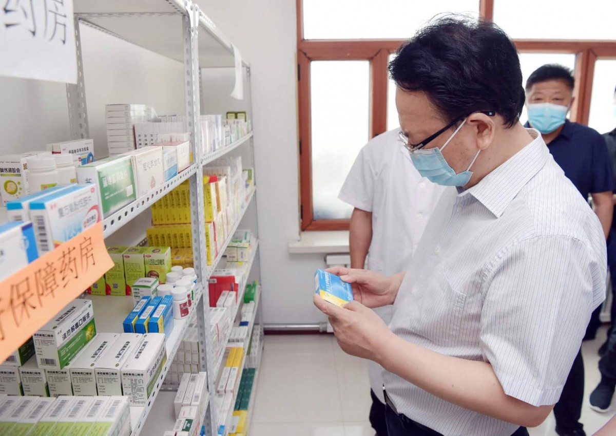 6 月 16,省委副书记、省长景俊海到松原市长岭县就脱贫攻坚工作进行调研。这是景俊海在长岭县小青村卫生室查看药品、了解贫困群众基本医疗报销等情况