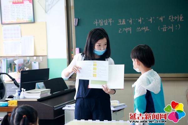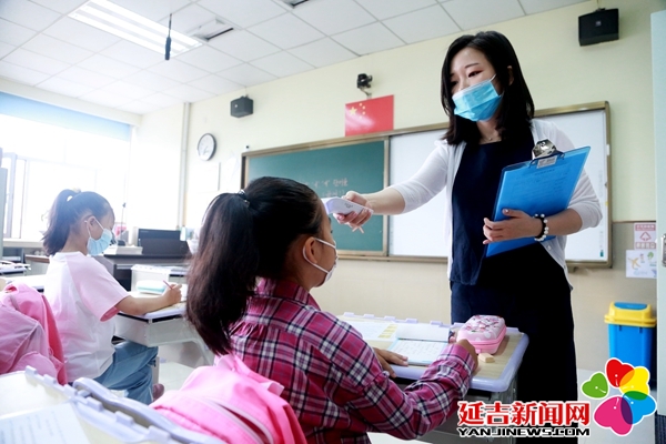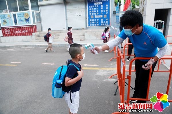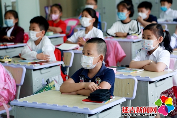 “终于开学了,太兴奋了。” 6月17日早上7时30分,延吉市中央小学1年级4班李鸿博早早就来到了校园里。经过几个月的长假后再返校,见到熟悉的老师和同学,尽管戴着口罩,尽管不能牵一牵手,同学们脸上还是露出了掩饰不住的激动。记者用相机记录了在这个非常时期一年级小不点上学的全过程。