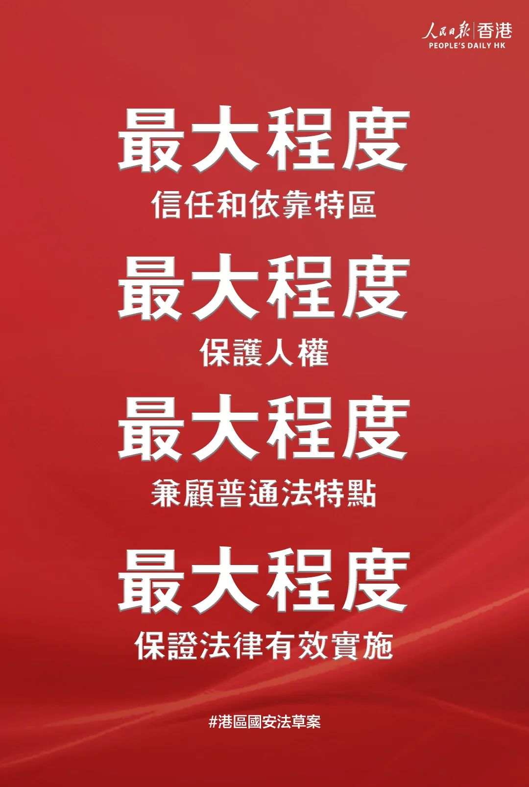 最大程度依靠特区,即建立健全相关法律制度和执行机制,相信特区能做好。法律的生命力在于实施。香港国安立法,不是喊喊口号、做做样子,必须有实际抓手,关键要依靠特区强化执法、司法等力量,加强维护国家安全相关工作。