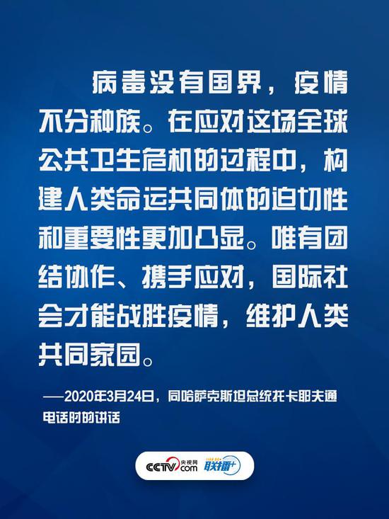 “新冠肺炎疫情的发生再次表明,人类是一个休戚与共的命运共同体”,“大疫当前,团结合作才是正道”。疫情发生以来,习近平主席通过电话、书信、视频等渠道开启“云外交”模式,“团结”是他讲话时提到的高频词之一。