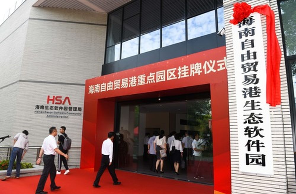 在海南澄迈县拍摄的海南自由贸易港生态软件园挂牌仪式现场。(新华社记者杨冠宇 摄)