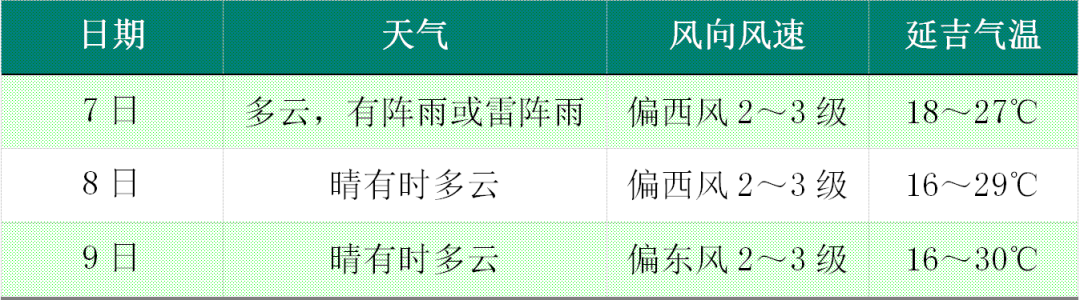 3.高考期间气温较高,提醒考生及家长做好防暑防晒措施,同时注意饮食卫生,预防胃肠道等疾病。(延边州气象局)
