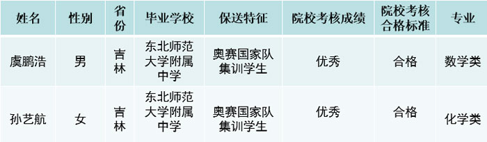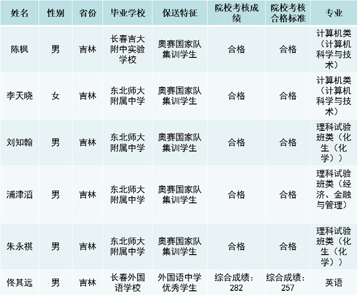2020年北京大学拟录取吉林保送生名单