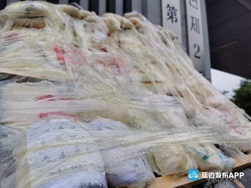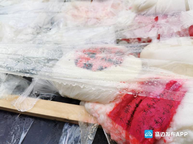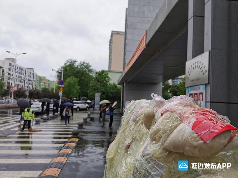 7月7日清晨,蒙蒙细雨中,延边二中考点门前,几块木板上已经贴满了打糕,这种属于延边特有的高考祝福方式,每一年高考都会如期出现。打糕=“打高”,取一个谐音,寓意打高分,金榜题名。从7日凌晨开始,就有考生家长陆续来到各个考点,他们把打糕贴在木板的最高处,还把写着祝福语的纸条贴在打糕上。