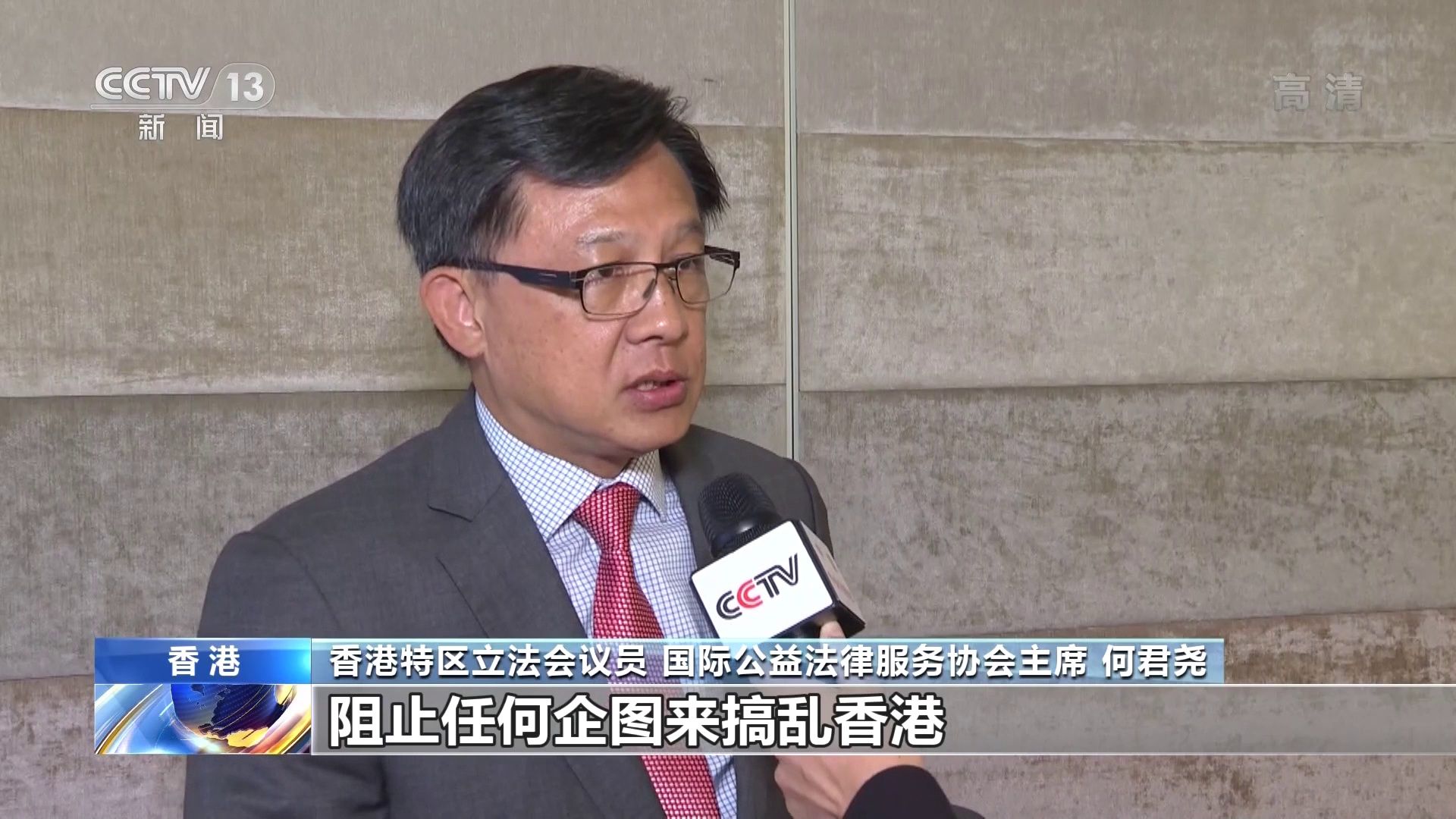香港特区立法会议员 国际公益法律服务协会主席 何君尧:有这条法律之后,我们可以恢复以往良好的营商环境,可以阻止任何搞乱香港的企图。