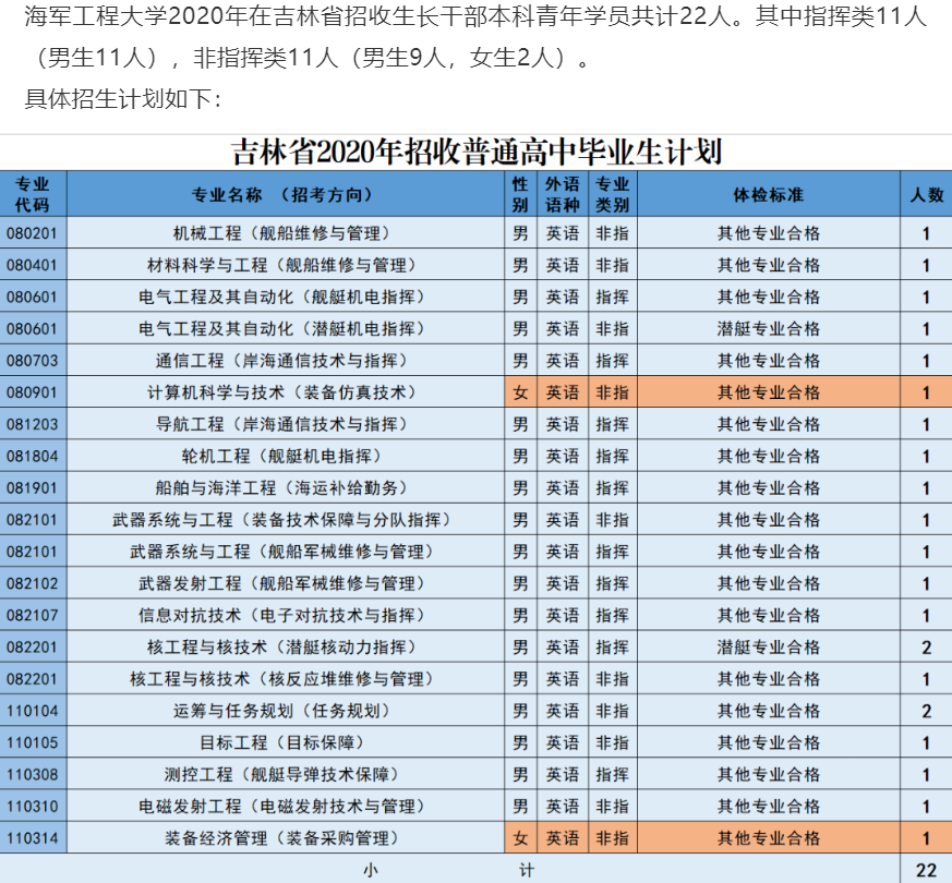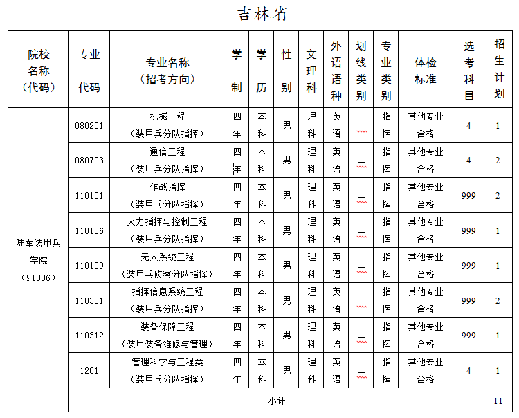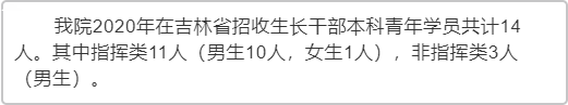 近日,陆军装甲兵学院、国防科技大学、海军大连舰艇学院、空军工程大学、海军工程大学招生计划新鲜出炉,五所军校在吉林省共招生124人。